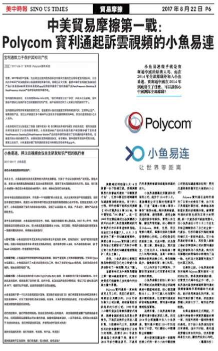 中美贸易摩擦第一战:Polycom宝利通起诉云视频的小鱼易连美国总统特朗普8月14日签署一份行政备忘录,授权美国贸易代表审查所谓的“中国贸易行为”,包括中国在技术转让等知识产权领域的做法。有分析人士称,莱特希泽可能将按照美国《1974年贸易法》第301条,对中国发起“301调查”。这一在1995年世贸组织成立后美国很少使用的法律工具授权美国总统可对贸易伙伴采取单边制裁措施。而就在文件签署不久,8月17日就发生了第一宗知识产权案件,美国企业Polycom宝利通公司在其微信...