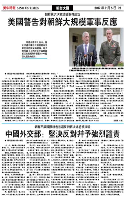 川普在推特上表示,他正考虑中断任何与朝鲜有生意往来的国家的贸易。这立即引起了人们对美中商贸联系以及两国每年价值6500亿美元贸易的关注。9月3日,朝中社就朝鲜第六次核试验取得成功发表声明,根据朝鲜劳动党战略核力量建设构想,朝鲜核科学家于9月3日12时在北部核试验场成功进行了洲际弹道导弹可携带氢弹的试验。此次氢弹试验的目的是验证和确认可在洲际弹道导弹战斗部装载的氢弹制造中,新研发和应用的当量可调技术和内部结构设计方案的正确性及可靠性。声明说,洲际...