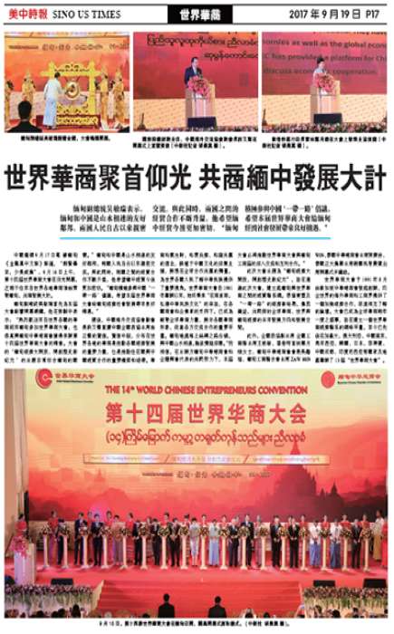缅甸副总统吴敏瑞表示,缅甸和中国是山水相连的友好邻邦,两国人民自古以来亲密交流。与此同时,两国之间的经贸合作不断升温,他希望缅中经贸今后更加密切。“缅甸积极参与中国‘一带一路’倡议,希望本届世界华商大会给缅甸经济社会发展带来良好机遇。”缅甸副总统吴敏瑞敲响金锣,大会鸣锣开幕。国务院侨办副主任、中国海外交流协会副会长许又声在开幕式上宣读贺信(中新社记者 张晨翼 摄)。香港特区行政长官林郑月娥在大会上发表主旨演讲(中新社记者 张晨翼 摄)。9 月...