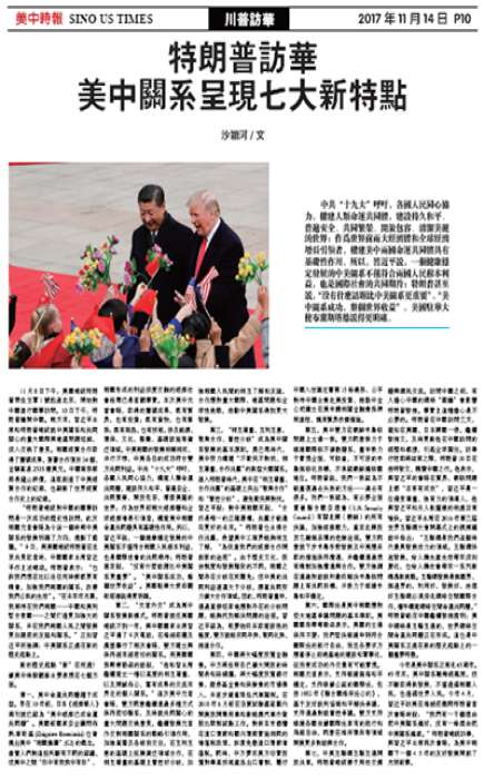 11月8日下午,美国总统特朗普乘坐空军1号抵达北京,开始对中国进行国事访问。10日下午,特朗普离开中国。两天来,习近平主席和特朗普总统就中美关系和共同关心的重大国际与地区问题坦诚、深入交换了意见。两国经贸合作取得了丰硕成果,签署合作项目34个,金额高达2535亿美元。中国商务部部长钟山评价,这既创造了中美经贸合作的纪录,也刷新了世界经贸合作史上的纪录。“特朗普总统对中国的国事访问是一次成功的历史性访问,此次两国元首会晤为今后一个时期中美关系的发展明...
