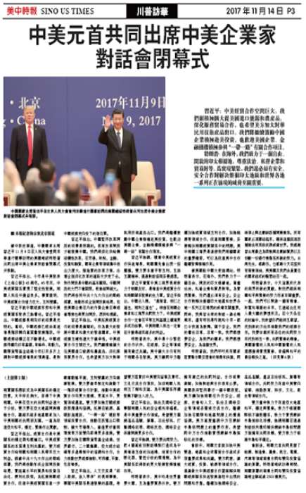 习近平:中美经贸合作空间巨大。我们愿积极扩大从美国进口能源和农产品,深化服务贸易合作,也希望美方加大对华民用技术产品出口。我们将继续鼓励中国企业积极赴美投资,也欢迎美国企业、金融机构积极参与“一带一路”有关合作项目。特朗普:在海外,我们致力于一个自由、开放的印太根据地,尊重法治、私营企业和贸易对等。为实现繁荣,我们还必须有安全。安全合作对解决整个印太地区和世界各地一系列正在涌现的威胁至关重要。中国国家主席习近平在北京人民大会堂同来华...