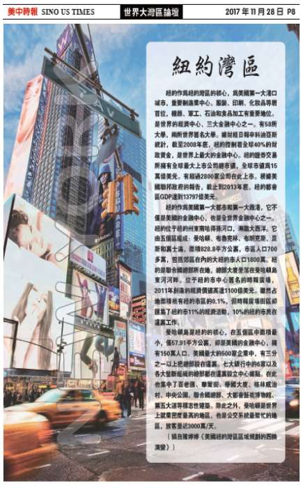 纽约作为纽约湾区的核心,为美国第一大港口城市,重要制造业中心。服装、印刷、化妆品等居首位,机器、军工、石油和食品加工有重要地位。是世界的经济中心、三大金融中心之一。有58所大学,两所世界著名大学。据财经日报辛科迪亚斯统计,截至2008年底,纽约控制着全球40%的财政资金,是世界上最大的金融中心。纽约证券交易所拥有全球最大上市公司总市值,全球市值为15万亿美元。有超过2800家公司在此上市。根据美国联邦政府的报告,截止到2013年底,纽约都会区GDP达到13797...