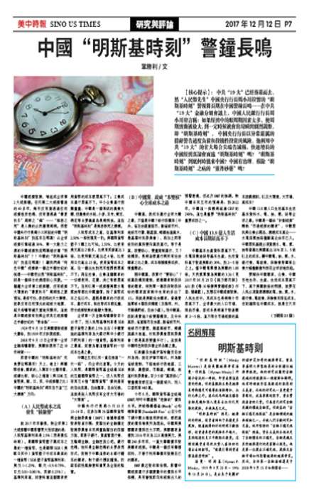 【核心提示】:中共“19大”已经落幕而去,然“人民币先生”中国央行行长周小川拉响的“明斯基时刻”警报将长期在中国警钟长鸣……在中共“19大”金融分组会议上,中国人民银行行长周小川发言称:如果经济中的顺周期因素太多,使周期波动被放大,到一定时候就会出现瞬间剧烈调整,即“明斯基时刻”。中国央行行长以异常严厉的措辞警告过度负债和投机性投资的风险。他利用中共“19大”的宏大场合尖端告诫称,快速增长的中国经济真谛会面临“明斯基时刻”吗?“明斯基时刻”到...