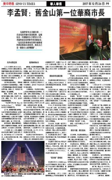 先侨们当年去美国打拼,一直表现出坚韧不拔的精神,这种信念一直激励着自己要努力工作,并最终成长为华裔中的美国市长,“这是为什么我每次到中国都要回到家乡台山的原因,我为自己是一个台山人感到骄傲”。为李孟贤送别12月15日清早6时30分左右,美国旧金山市政府大厦前波尔克街,两辆闪烁着红灯的消防车相向伸出云梯,四名消防员在清冽的寒风中奋力悬挂一面巨大的美国国旗。街对面的市政府大厦旗杆上,降下一半的美国国旗飘扬着。消防车后面的广场,一颗缀满白色灯饰的巨...