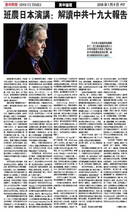 班农日本演讲:解读中共十九大报告