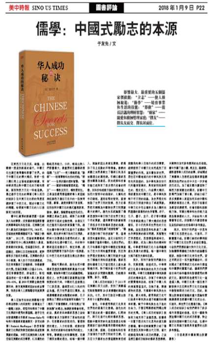 影响最大、最重要的五个儒家价值观:“立志”——使人积极取进;“勤学”——培育事业和生活的技能;“节俭”——从长计议的理财智慧;“顾家”——关爱和积极管理家庭;“择友”——择良友而交、择良居而住。在东西方文化交流、碰撞,出国潮一度达到新高的当代,中国文化也广泛地传播和影响了世界。由于中国文化的博大精深,致使一些人难以马上全面地认识和解读,有时候表现出对中国文化的不解和怀疑,甚而对西方文化一味地追捧。最近赵宇空先生的专著《华人成功的秘诀...