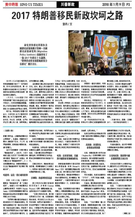 研究世界移民问题和美国移民政策的独立智库—美国移民政策研究所(MigrationPolicyInstitute)最新发布了一份2017年移民十大议题,“特朗普政府采取措施收紧合法移民”排在首位。自今年1月20日就任总统以来,特朗普雷厉风行推行了一系列新政策,其中以移民政策改革、单一针对穆斯林的旅游禁令以及针对拉丁裔移民的边境执法等最为强硬,遭到的对抗也最激烈。1月25日,入主白宫仅5天的特朗普签署了两份加强边境安全的行政命令,内容包括美墨边境筑墙、停止向移民庇护城市提...