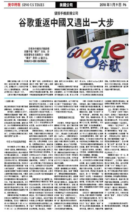 领投手机直播公司 谷歌重返中国又迈出一大步
