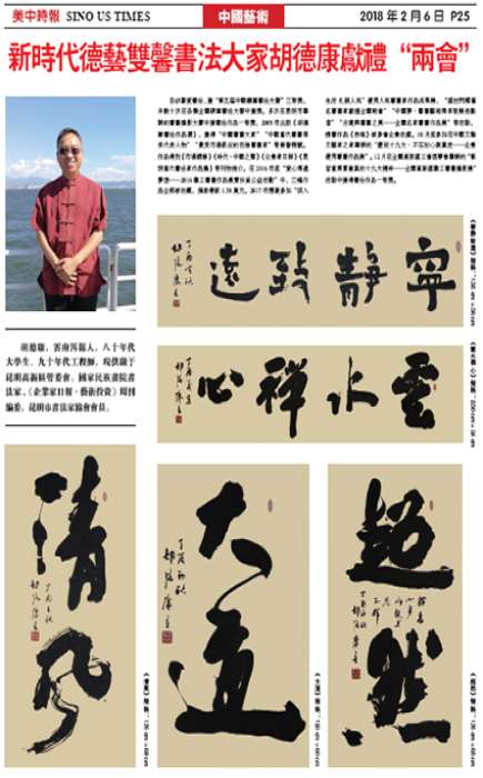 新时代德艺双馨书法大家胡德康献礼两会胡德康,云南洱源人,八十年代大学生、九十年代工程师,现供职于昆明高新区管委会。国家民族画院书法家,《企业家日报·艺术投资》周刊编委,昆明市书法家协会会员。自幼喜爱书法,获“第五届中国钢笔书法大赛”三等奖,并数十次在各类全国硬笔书法大赛中获奖。多次在昆明市举办的书画摄影大赛中获书法作品一等奖,2005年出版《胡德康书法作品选》,获得“中国书画大家”“中国当代书画传承代表人物”“最受市场欢迎的百强书画家”等荣誉...