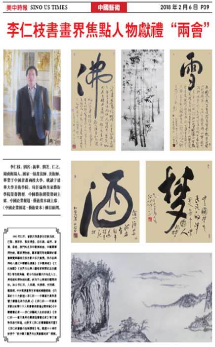 李仁枝,别名:新华、润芝、仁之。湖南衡阳人。国家一级书法师、美术师。毕业于中国书画函授大学,就读于清华大学美术学院。现任瑞典皇家艺术学院荣誉教授、中国艺术网荣誉副主席、中国企业报道·艺术资本副主席、《中国企业报道·艺术资本》栏目顾问。1991年以来,曾数次受邀参加在新加坡、巴黎、莫斯科、圣彼得堡、洛杉矶、迪拜、首尔、香港、澳门和北京中国美术馆、中国军事博物馆、国家博物馆、国家画院等地举办的书画展览与艺术交流活动并多次获奖。其作品与传略入编《...