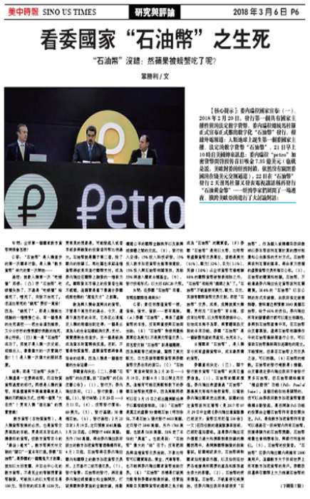 【核心提示】:委内瑞拉国家宣布:(一)、2018年2月20日,发行第一个具有国家主权性质的法定数字货币。委内瑞拉总统马杜罗正式宣布正式推出数字化“石油币”发行。根据外电报道:人类地球上诞生第一个委国家主权、法定的数字货币“石油币”。21日早上10时自美国传来讯息:委内瑞拉“petro”加密货币开启预售首日吸金7.35亿美元(也就是说,美欧对委的经济封锁,依然没有关闭委国的在线美元交割通道),22日在“石油币”发行2天后马杜罗又发表电视讲话称再发行“石油黄...