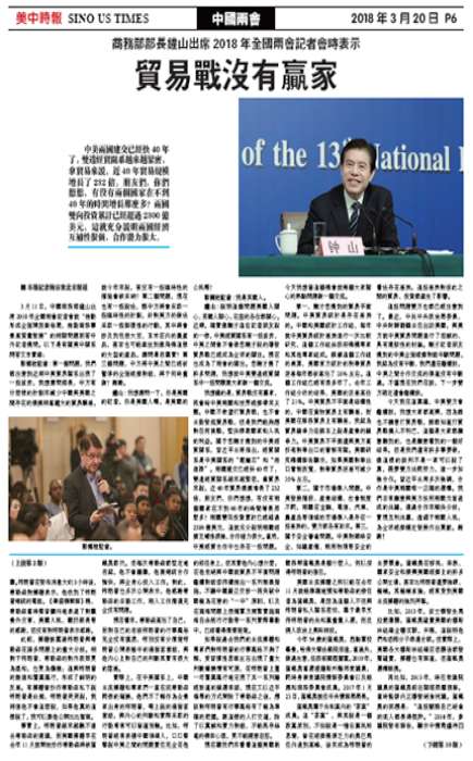 中美两国建交已经快40年了,双边经贸关系越来越紧密,拿贸易来说,近40年贸易规模增长了232倍,朋友们,你们想想,有没有两个国家在不到40年的时间增长那么多?两国双向投资累计已经超过2300亿美元,这就充分说明两国经济互补性很强,合作潜力很大。3月11日,中国商务部钟山出席2018年全国两会记者会就“推动形成全面开放新格局,推动商务事业高质量发展”的相关问题回答中外记者提问。以下是有关美中关系问答文字实录:彭博社记者:第一个问题,我们都注意到近期中美贸易...
