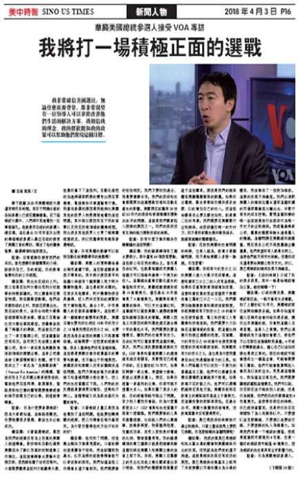 我非常确信美国选民,无论什么族裔背景,都非常渴望有一位领导人可以拿出改善他们生活的解决方案。我相信我的理念、我的价值观和我的政策可以帮助他们实现这个目标。眼下距离2020年美国总统大选还有两年多时间。有志于问鼎白宫的各路参选人已经在摩拳擦掌。在下届总统大选中,人们将罕见地看到一位华裔面孔。他就是来自纽约的参选人杨安泽。这位过去50年来首次出现的华裔总统参选人最近在纽约接受了美国之音的专访,阐述了他的职业背景、竞选纲领和施政理念。记者:非常...