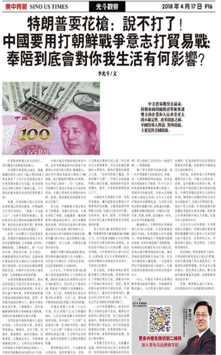 中美贸易战没有赢家,持续加码的关税清单只会让双方的企业和人民承受更大的不确定性。改革开放之初,中国领导人曾说:对外开放,主要是对美国开放。中美贸易战还没有全面开打,朋友圈却已经燃起熊熊战火:中美双方几番隔空喊话,义愤填膺的网友已经炸了锅;《环球时报》更是发表了《用打抗美援朝的意志打对美贸易战》的社论:抗美援朝是因为战火燃到了鸭绿江边,今天发起的贸易战是因为特朗普要价太高?其实,中美两国之间冗长的征税清单还没有开始实施,但舆论战已打得...