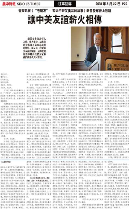 崔天凯大使在《“老朋友”:习近平与艾奥瓦的故事》新书发布会上的致辞