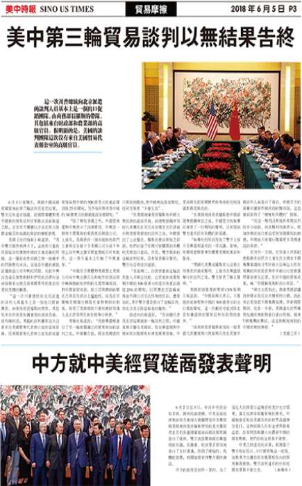 美中贸易会谈6月3日星期天,美国中国两国有关贸易的第三轮谈判在北京结束,双方没有达成协议。在国际媒体对美中最新的贸易谈判结果做出负面报道之际,北京官方媒体似乎是在努力发掘这轮没有协议的会谈的积极意义。美国《纽约时报》报道说,“美中双方显然相持不下,这就使川普政府面临如何应对中国的工业政策的问题。这一僵局也使两国之间一个棘手的问题悬而未决,这就是中国的通讯设备制造公司中兴的问题。先前中兴因为违反制裁朝鲜和伊朗的法律向这两个国家出售含有美国零...