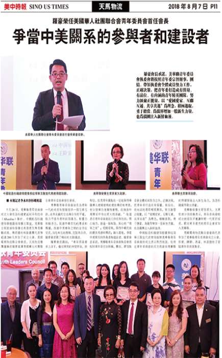 罗豪荣任美国华人社团联合会青年委员会首任会长