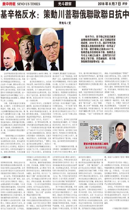 时至今日,基辛格已经是美国多届总统的资深顾问,成了美国最资深的政客。2016年5月,尚在争夺共和党候选人资格的特朗普第一次拜访了基辛格。就任总统之后的2017年,特朗普也多次会晤基辛格。特朗普去年亚太5国之行前夕,还专门在白宫会见了基辛格,并当面取经。基辛格对特朗普的影响可见一斑。全世界无产阶级还没有联合起来,全世界资产阶级倒先联合起来了:特朗普贸易战祭出大招:美国宣布与欧盟达成零关税协定,一个占全球一半GDP、拥有8.3亿人口的超级自贸区即将诞生,这...