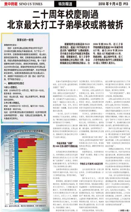 二十周年校庆刚过,北京最大打工子弟学校或将被拆