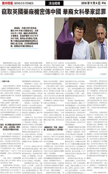 窃取英国药厂机密传中国 华裔女科学家认罪
