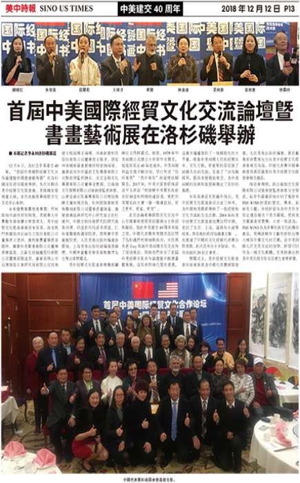 首届中美国际经贸文化交流论坛暨书画艺术展在洛杉矶举办
