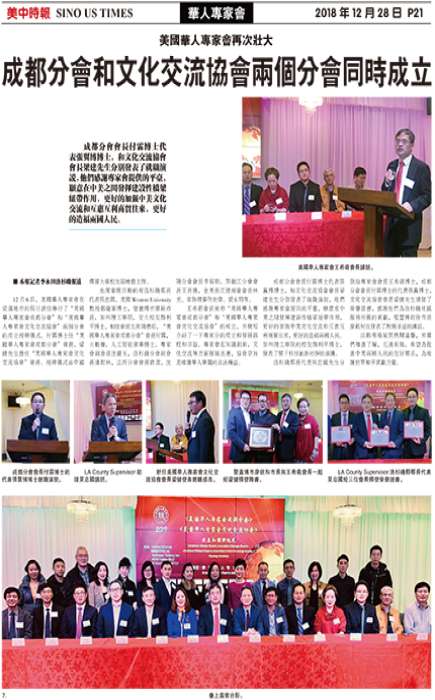 美国华人专家会再次壮大成都分会和文化交流协会两个分会同时成立