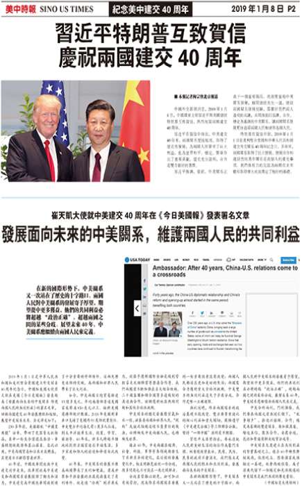 崔天凯大使就中美建交40周年在《今日美国报》发表署名文章
