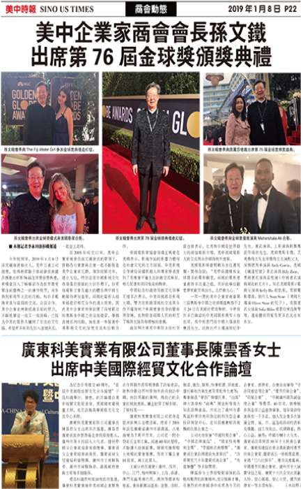 孙文铁会长出席第76届金球奖典礼走红毯孙文铁会长与TheFijiWaterGirl参加金球奖典礼走红毯孙文铁会长出席金球奖仪式与美国影星合影孙文铁会长与唐丽莎总裁出席第76届金球奖颁奖盛典孙文铁会长与金球奖获奖演员MahershalaAli合影唐丽莎总裁与金球奖获奖演员PatriciaClarkson合影金球奖得主及主持人吴珊卓及搭档主持人AndySamberg金球奖影帝RamiMalek雷米马利克HFPAHollywoodForeignPressAssociation主席MeherTatna美国著名演员老戏骨迈克尔.道格拉斯(MichaelDouglas)获得第7...
