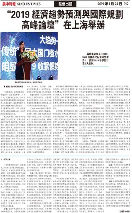 “2019经济趋势预测与国际规划高峰论坛”在上海举办