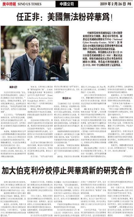 中国华为参与英国的电信工程可能带来的任何安全风险,都是可以掌控的。据悉这是英国国家网络安全中心(NationalCyberSecurityCentre,NCSC)对华为公司可能给英国电信业带来哪些潜在威胁作了全面评估后得出的初步结论。与此同时,华为创始人任正非2月18日在接受英国广播公司(BBC)独家采访时称,即使英国政府决定禁止华为参与英国的5G网络,华为也不会因此撤资。2月19日,BBC中文网站刊登了这篇专访。风险可控任正非在接受采访时说:“首先,我反对美国这样的做法。这种出...
