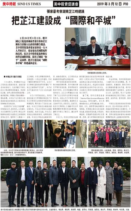 2月28日至3月2日,应中国民主促进会湖南省委员会和芷江侗族自治县人民政府的联合邀请,美中投资促进会张家豪会长一行8人考察芷江。张家豪站在国际视野的高度,结合美中投资促进会拥有的丰富国际资源,提出了围绕“和平”这张牌,把芷江建设成“国际和平城”的建议和意见。张家豪会长在座谈会上发言。右起:中共芷江侗族自治县县委书记曾佑光、美中投资促进会会长张家豪、美中时报社陈光平、星光影业董事长、电影《芷江!芷江!》总编导邓星光。张家豪会长参观飞虎队纪念...