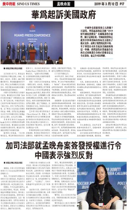 加司法部就孟晚舟案签发授权进行令 中国表示强烈反对