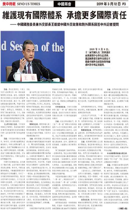 2019年3月8日,十三届全国人大二次会议在两会新闻中心举行记者会,邀请国务委员兼外交部长王毅就中国外交政策和对外关系回答中外记者提问。王毅:各位记者朋友,大家上午好!很高兴又在一年一度的两会期间同大家见面。首先,我还是要再次向在场的女士和所有女同胞们致以节日的祝福。过去一年,面对纷繁复杂的国际形势,中国外交在以习近平同志为核心的党中央坚强领导下,保持定力,与时俱进,又取得了新的重要成就。今天,我愿尽可能全面地介绍中国的外交政策,进一步增...