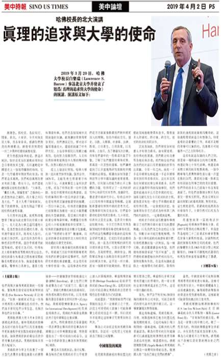 哈佛校长的北大演讲:真理的追求与大学的使命