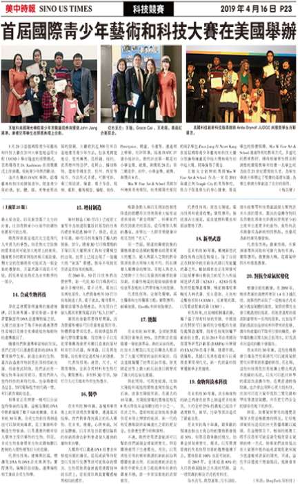 3月20日首届国际青少年艺术和科技大赛在加州大学圣地亚哥分校(UCSD)举行隆重的颁奖仪式。京都奖得主Dr.Kashiwara在颁奖仪式上作演讲,受到青少年热烈欢迎。美国当代艺术研究会会长.画家王敏MinW丹黛逸馨和美国阳光学院青少年宫郑重院长与获奖JohnJiang蒋准、康偌儿等学生在颁奖典礼上合影。美国科技创新科技指导教师AnitaBrynolfJUDGE与获奖学生合影留念。这次比赛由IYATC举办,倡导艺术和科技的发展进步,促进青少年的德,智,体,群,美等重要品质的发展。大赛收到近...