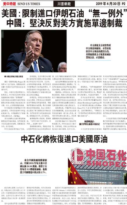 美国:限制进口伊朗石油 “无一例外” 中国:坚决反对美方实施单边制裁