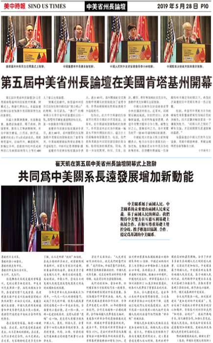 崔天凯在第五届中美省州长论坛开幕式上的致辞