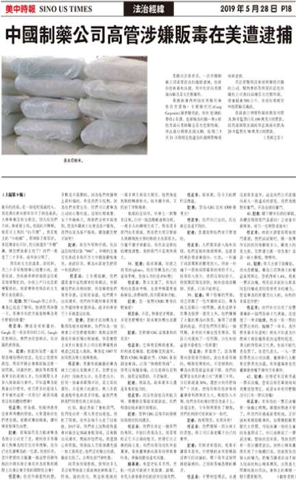 中国制药公司高管涉嫌贩毒在美遭逮捕