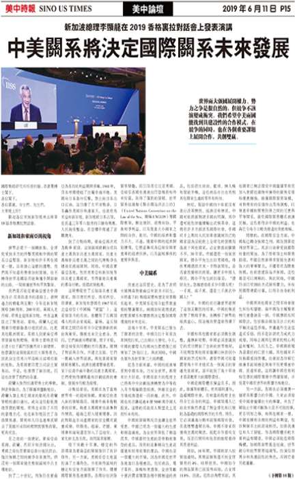 世界两大强国展开权力、势力之争是很自然的,但竞争不该演变成冲突。我们希望中美两国能找到具建设性的合作模式,在竞争的同时,也在各个重要课题上展开合作,共创双赢。国际战略研究所所长约翰.奇普曼博士阁下,各位阁下,各位嘉宾,女士们、先生们,大家晚上好!欢迎各位来到新加坡并出席第18届香格里拉对话会。新加坡和东南亚的视角世界正处于一个转折点。全球化受到多方的抨击美国和中国的关系日益紧张。新加坡和许多其他国家一样,非常担心这样的趋势。我们既不知道...