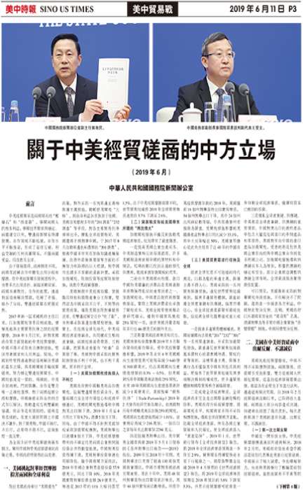国务院新闻办公室副主任郭卫民商务部副部长兼国际贸易谈判副代表王受文国务院新闻办公室2日发表《关于中美经贸磋商的中方立场》白皮书。全文如下:关于中美经贸磋商的中方立场(2019年6月)中华人民共和国国务院新闻办公室目录前言一、美国挑起对华经贸摩擦损害两国和全球利益二、美国在中美经贸磋商中出尔反尔、不讲诚信三、中国始终坚持平等、互利、诚信的磋商立场结束语前言中美经贸关系是两国关系的“压舱石”和“推进器”,事关两国人民根本利益,事关世界繁荣与稳定。...