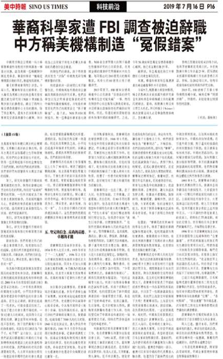 华裔科学家遭FBI调查被迫辞职 中方称美机构制造“冤假错案”