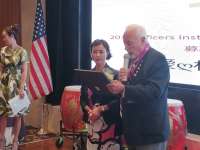 新任会长Shirley张致辞。国会众议院赵美心在活动中致辞。国会众议院赵美心给新任会长Shirley张(左1)上届会长Susan黄颁发证书。狮子会区域总监GaryHall(右)向Shirley张(左)颁发证书。美国狮子会区域总监GaryHall与新一届领导宣读誓词。新任会长Shirley张给上届会长Susan黄赠送纪念品。圣盖博市议员廖钦和(右2)给历届会长颁发证书。美国国际艺术家联谊会杨采烨(中间红色衣服者)领唱YouRaisemeup。新一届领导全体在宣誓后合影。7月28日,南加州天普市百年狮子会在全...
