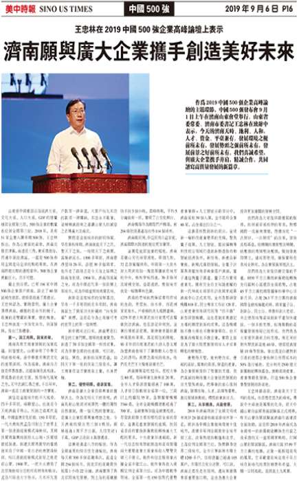 作为2019中国500强企业高峰论坛的主题环节,中国500强发布会9月1日上午在济南山东会堂举行。山东省委常委、济南市委书记王忠林在致辞中表示,今天的济南天时、地利、人和,人才、资金、平台兼有。发展环境之优前所未有,发展势头之强前所未有,发展前景之好前所未有。我们真诚希望,与广大企业携手并肩,精诚合作,共同谱写高质量发展的新篇章。山东是中国东部沿海经济大省、文化大省、人口大省,GDP的总量稳居全国第三位,500强企业的数量也位居全国第三位。2018年,共...