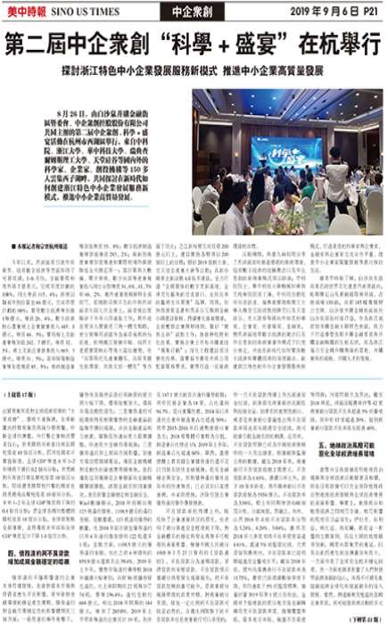8月26日,由白沙泉并购金融街区管委会、中企众创控股股份有限公司共同主办的第二届中企众创.科学+盛宴活动在杭州市西湖区举行,来自中科院、浙江大学、华中科技大学、瑞典查尔姆斯理工大学、天堂硅谷等国内外的科学家、企业家、创投机构等150多人云集西子湖畔,共同探讨在新时代如何创建浙江特色中小企业发展服务新模式,推进中小企业高质量发展。今年以来,西湖区在引进外来资本、培育数字经济等方面取得了可喜成绩,1-6月份,全区实际利用外资7亿美元,完成年度计划的1...