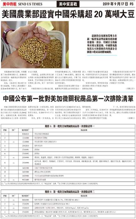 根据《国务院关税税则委员会关于试行开展对美加征关税商品排除工作的公告》(税委会公告[2019]2号),经国务院批准,国务院关税税则委员会11日公布第一批对美加征关税商品第一次排除清单,对第一批对美加征关税商品,第一次排除部分商品,自2019年9月17日起实施。其中,清单一所列商品,自2019年9月17日至2020年9月16日,不再加征我为反制美301措施所加征的关税。对已加征的关税税款予以退还,相关进口企业应自排除清单公布之日起6个月内按规定向海关申请办理。清单二所列商...