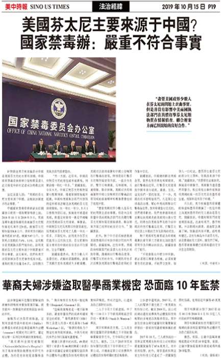 “尽管美国政界少数人在芬太尼的问题上歪曲事实,但是并没有影响中美两国执法部门在具体打击芬太尼类物质在情报侦查、联合办案方面已经开始的良好合作。”针对最近美方有言论表示中国是美国芬太尼的主要来源国,中国国家禁毒委员会办公室相关负责人近日接受中新社记者采访时做出回应。这位负责人说:“美国的芬太尼主要来源于中国,这种说法严重不符合事实。”中国国家禁毒委员会副主任刘跃进日前在一场新闻发布会上说,2018年10月至2019年3月,美国海关和边境保护局共查...