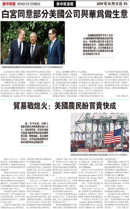 美国总统特朗普今年6月在20国集团峰会期间会晤习近平后表示,如果双方的合作不危害美国的国家安全,美国公司就可以与华为做生意。白宫因此允许美国商务部对符合这个要求的美国公司发放出口许可。白宫同意向部分美国公司签发特别许可,允许这些公司与华为公司做生意。此举可能被视为是白宫在美中恢复贸易谈判前释出的善意。《华尔街日报》10月10日报道这个消息时说,美国总统特朗普今年6月在20国集团峰会期间会晤习近平后表示,如果双方的合作不危害美国的国家安全,美国公司...
