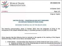 美国7年前违规 中国向WTO申请24亿美元报复性制裁