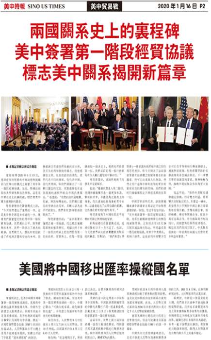 两个史上的里程碑 美中签署第一阶段经贸协议 标志美中关系揭开新篇章