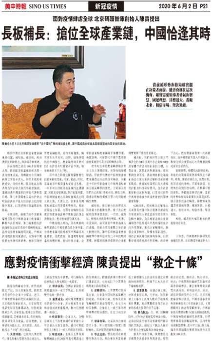 面对疫情肆虐全球 北京码头智库创始人陈贵提出